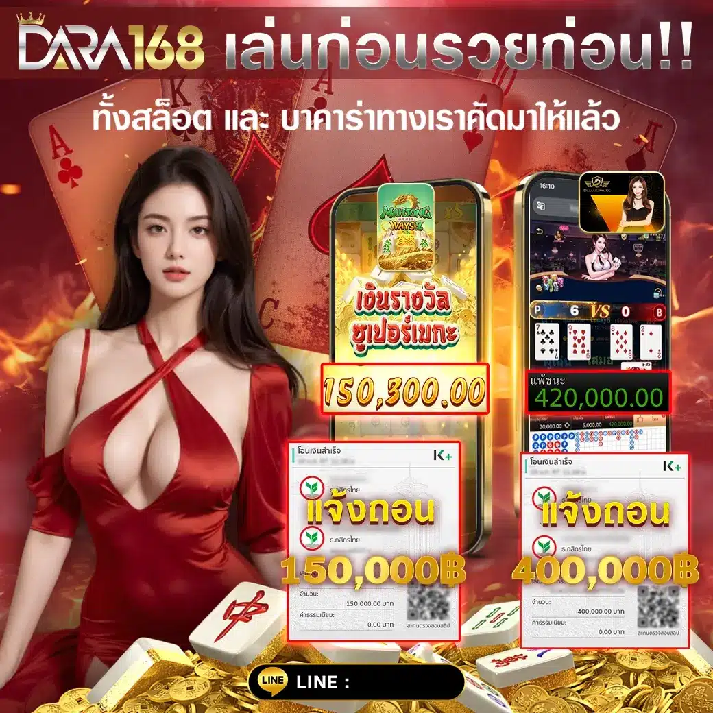 Dara168 นำเสนอเกมหลากหลายประเภท เช่น แทงบอลออนไลน์, สล็อตออนไลน์, บาคาร่า, และเกมคาสิโนสดที่ถ่ายทอดสดจากสถานที่จริง การเล่นที่นี่ไม่เพียงแค่สร้างความสนุกสนาน แต่ยังเป็นโอกาสในการทำกำไรให้กับผู้เล่นอีกด้วย ระบบการฝาก-ถอนที่รวดเร็วและง่ายดาย ทำให้คุณไม่ต้องรอนานเมื่อทำรายการ นอกจากนี้ยังมีโปรโมชั่นและโบนัสที่น่าสนใจมากมาย ที่ช่วยเพิ่มโอกาสในการชนะให้กับสมาชิกใหม่และผู้เล่นประจำ